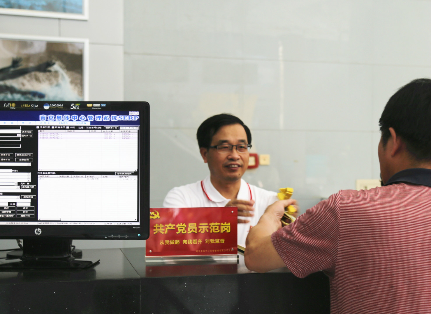 7月23日上午,機關(guān)黨支部支部書記張曉鋼帶頭來到游泳館前臺,與前臺員工一起,為泳客發(fā)放儲物柜手牌、接受游客咨詢,以實際行動踐行共產(chǎn)黨員的先鋒模范作用。