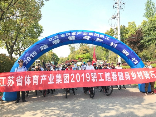 4月13日,省體育產業集團工會組織員工在蘇體運動健康公司江寧天云湖運動村開展“美麗鄉村,‘騎’樂無窮”踏春騎行活動。活動旨在貫徹全民健身國家戰略,深入落實江蘇省全民健身實施計劃,引導員工樹立崇尚運動、參與健身、追求健康的觀念,以更加飽滿的狀態迎接集團第一次黨員大會的勝利召開。集團總經理陸路為騎行活動鳴笛發令,集團領導周潔、宗睿潔以及集團總部、各子公司、部分職工家屬共計70余人參加了活動。