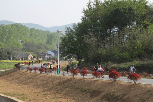 春暖花開,桃紅柳綠,人間最美四月天。當天下午,大家齊聚南京江寧天云湖運動村,在專業教練的指導下進行分組和熱身活動,學習佩戴騎行頭盔,掌握自行車換擋技巧,準備蓄勢待發。伴隨著清脆的發令汽笛聲,大家踩著公路自行車,迎著陣陣微風,呼吸著山野間的清新空氣,環繞著波光粼粼的湖水,行駛在綠意盎然的鄉間公路上,盡情享受春天的愜意,領略美麗鄉村的宜人景色。