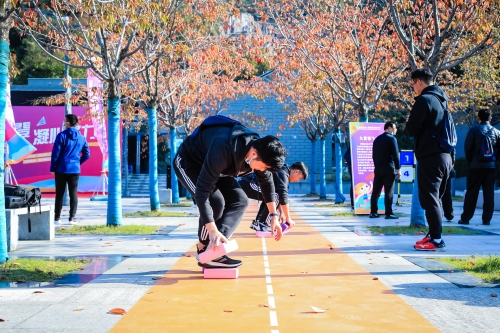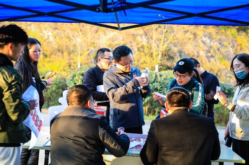 14時30分,參賽選手準時在幕府山櫻花廣場集合,大家摩拳擦掌、興致高昂地迎接著集團精心準備的賽前預熱游戲。不管是考驗協調性的砥礪前行,還是講究投擲精準度的飛鏢團體賽、九宮格飛盤,亦或是優雅與技巧并存的迷你高爾夫,所有參賽選手都盡情展現自己的能力,精彩狀況連連,為接下來的登山比賽烘托了熱烈高漲的氣氛。