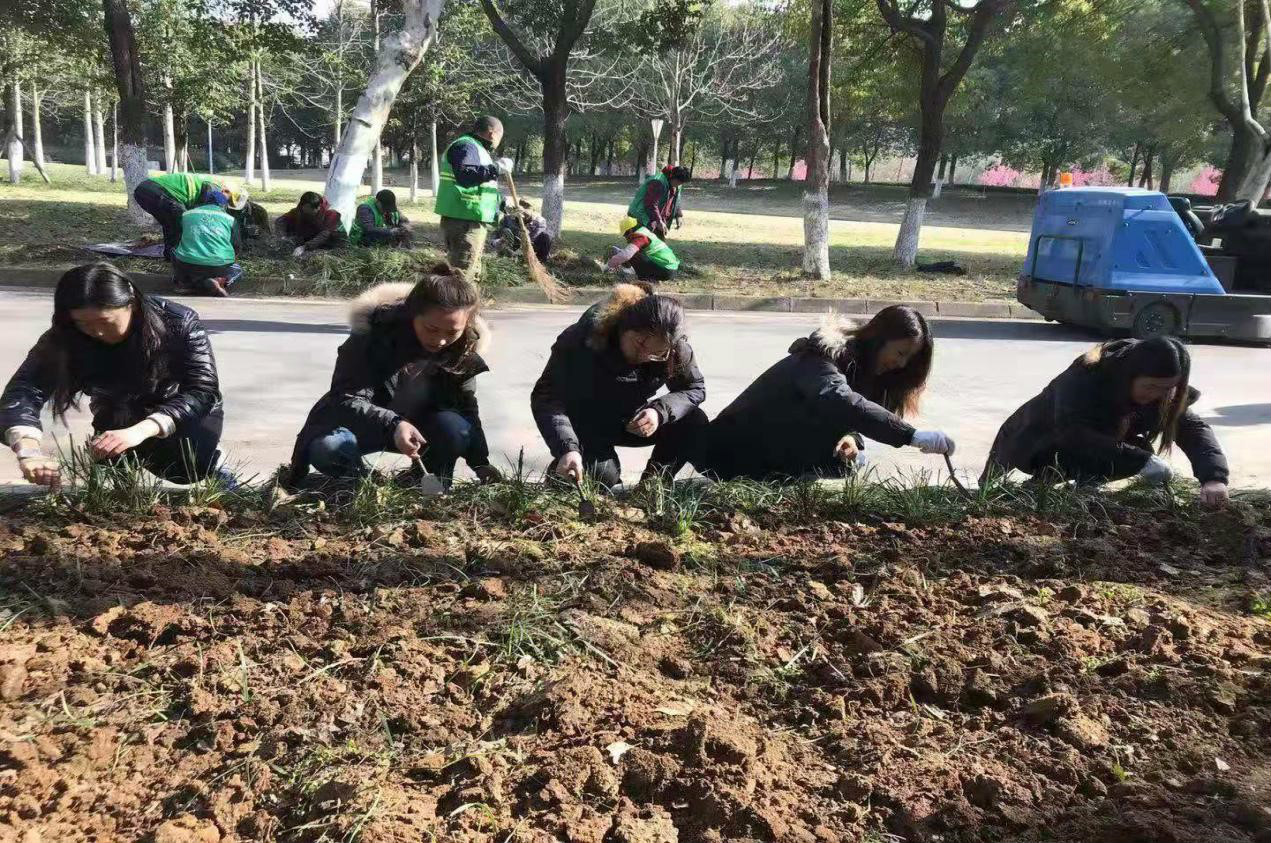 大家帶著水桶、鐵锨等植樹工具早早到達現場,活動期間大家相互配合、分工協作,熱情洋溢、干勁十足,經過挖坑、種植、培土、澆水等各環節近1個多小時的辛勤勞動,順利將麥冬植入150㎡綠化區域。