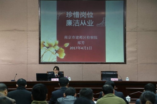 會議邀請了建鄴區檢察院預防職務犯罪科科長鄭芳同志為大家做了“珍惜崗位、廉潔從業”主題講座,講座針對國企為什么要開展職務犯罪預防、國企職務犯罪的情況和特征、犯罪特點以及犯罪罪名解析等進行了詳細講解。會上公司黨委書記、總經理陳仁虎同志做動員講話,他指出要堅持“標本兼治、綜合治理、懲防并舉、注重預防”的工作方針,突出構建預防腐敗體系這條主線,以創建廉潔企業為目標,以制約和監督權力運行為核心,以崗位風險防控為基礎,以加強制度建設為重點,完善預警及時的廉潔風險防控機制,最大限度地降低腐敗發生的風險,努力提高公司反腐倡廉建設的科學化、制度化和規范化水平。會上公司領導還為部分部門代表授“廉潔承諾牌”,授牌代表做了表態發言,所有參會人員在廉潔承諾書上簽名做出莊嚴承諾。