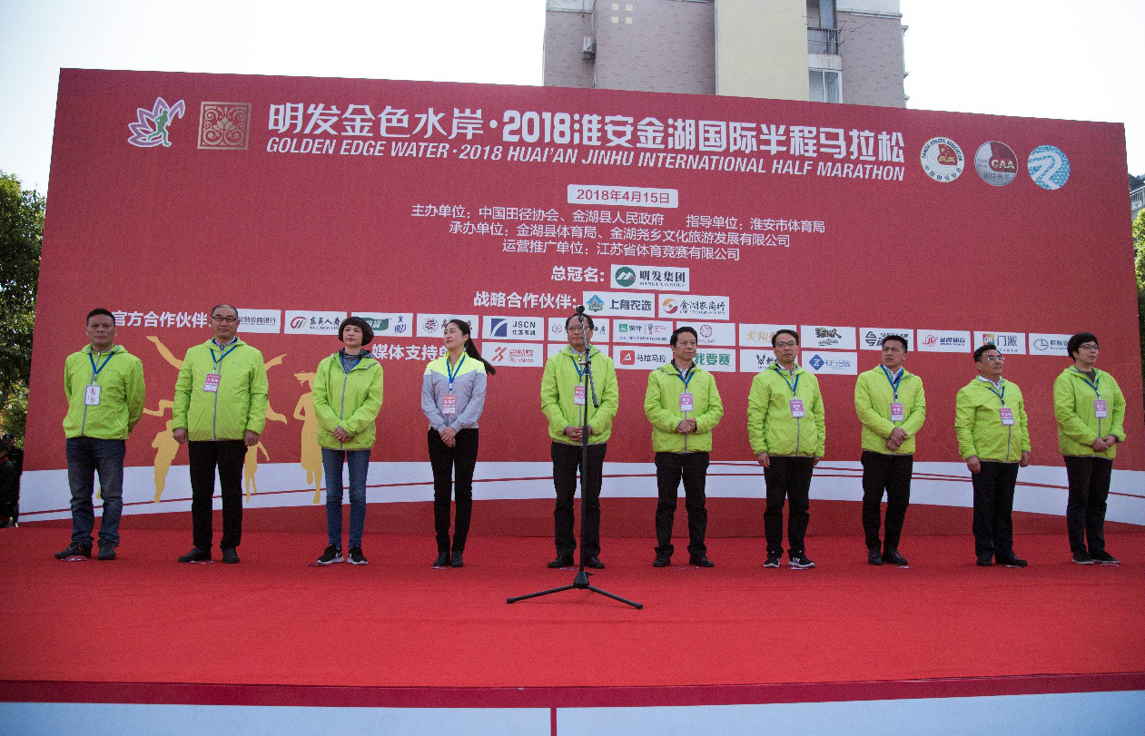 江蘇省體育總會副主席顏爭鳴,江蘇省體育產業集團董事長顧曄,淮安市委常委、市委宣傳部長周毅,江蘇省體育產業集團副總經理、江蘇省體育競賽有限公司董事長宗睿潔等領導出席發槍儀式。江蘇省體育競賽有限公司連續三年負責淮安金湖國際半程馬拉松賽的運營推廣。2016年該賽事榮獲中國田徑協會頒發的銅牌賽事稱號,2017年晉升為銀牌賽事。今年組委會按照中國田協金牌、國際田聯金標的“雙金”賽事標準,對賽事各個環節進行提檔升級,全力沖刺金牌賽事。“金馬”已經成為淮安的一張新城市名片。