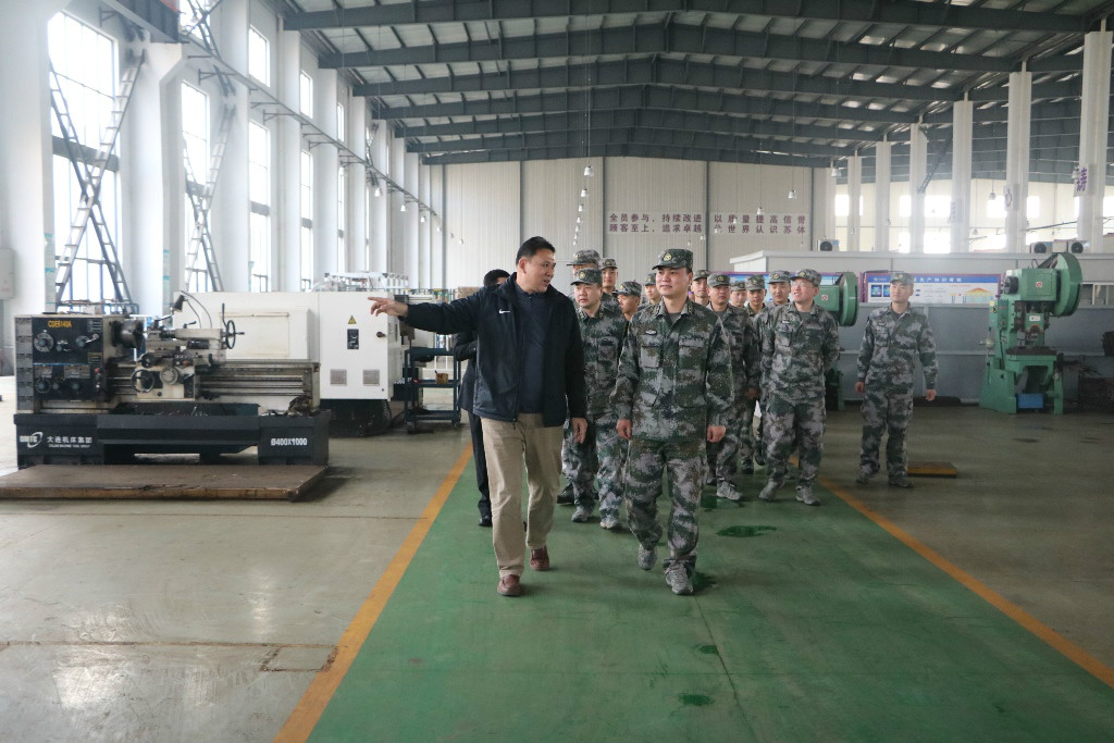 東部戰區某部隊一行首先來到生產車間參觀考察,曹慶江總經理詳細介紹了公司投入使用的業內領的激光切割機、噴涂流水線、綜合測試平臺等生產檢測設備及體育健身器材詳細生產工藝流程。