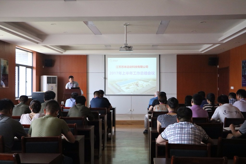 2017年7月19日,江蘇蘇體運動科技有限公司組織召開2017年上半年工作總結會議,公司全體工作人員參加了會議。會議由總經理助理李晟文主持。