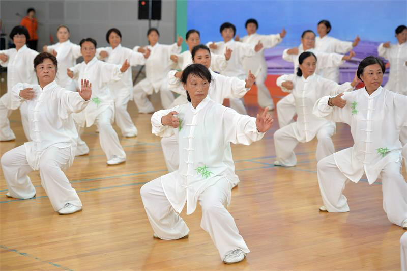 (近千名健身愛好者在游泳館副館參與全民健身日啟動儀式)