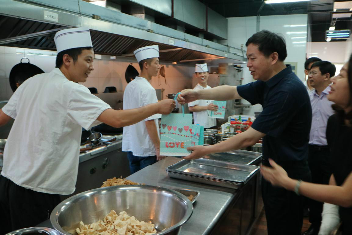 陸路總經理會同集團紀委書記史振軍同志深入南京奧體中心、蘇體健康管理有限公司方山運動員公寓,為戶外草坪維保、設備維修和廚房等高溫環境下的工作人員送去了消暑降溫用品。陸總詳細詢問了基層一線工作人員的生活、工作情況,并叮囑他們要時刻注意自身和生產崗位的安全,做到健康工作、安全下班。陸總指出,夏季高溫條件下,部分設備可能出現故障,人的身體可能出現一定程度的反應遲緩,各部門、各崗位要利用一切資源做好防暑降溫工作,要針對可能出現的突發情況,完善應急處置預案,做到“發現問題及早處置、出現情況及時匯報”,為職工創造一個安全、健康的工作環境。