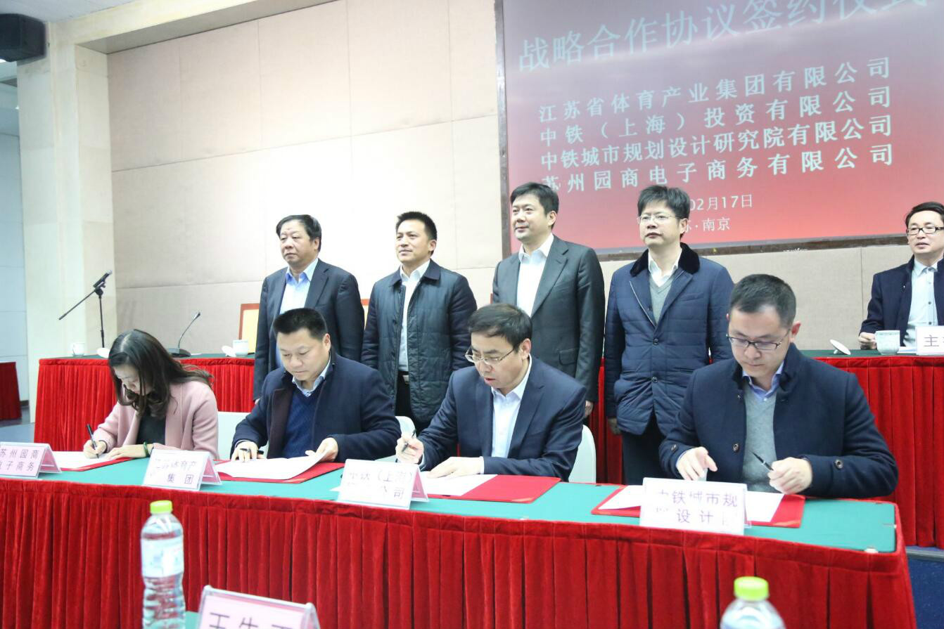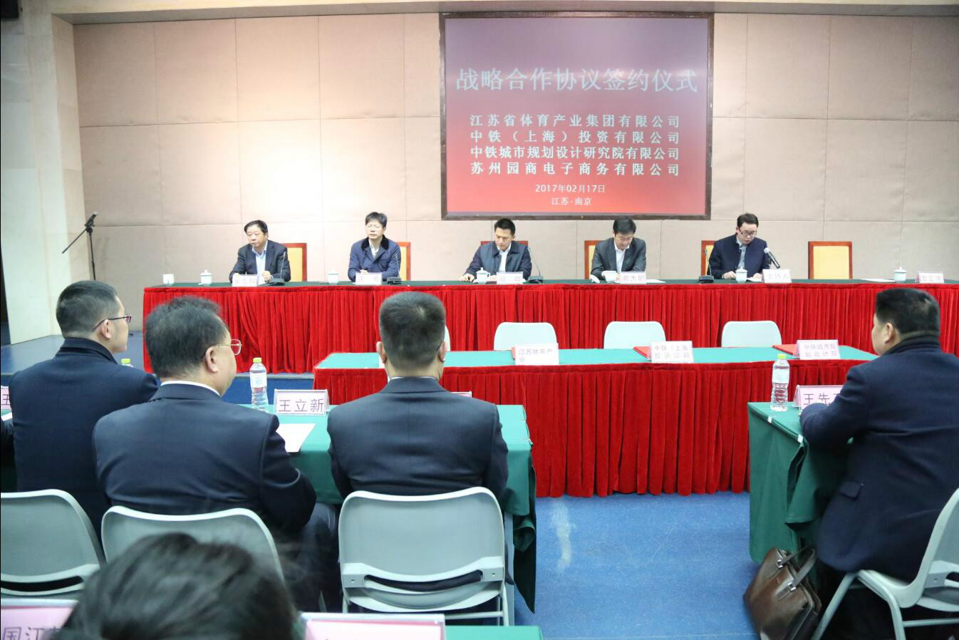 江蘇省體育產業(yè)集團、中國中鐵、蘇州園商戰(zhàn)略合作簽約儀式在南京舉行